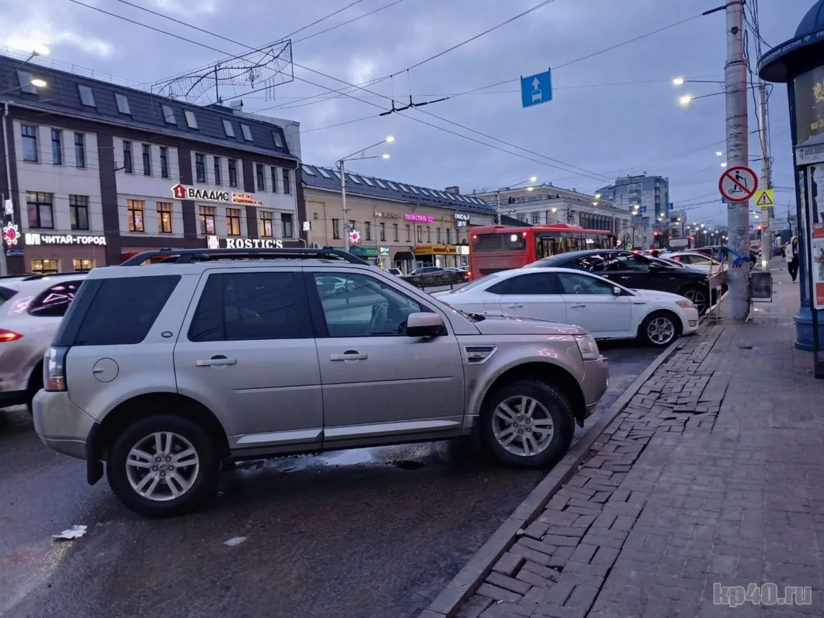 Автомобилисты по-прежнему паркуются у торгового центра на улице Кирова в районе перекрестка с улицей Герцена.