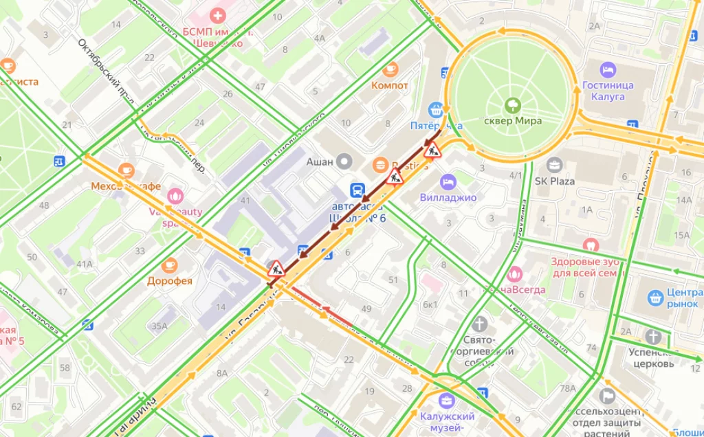 В Калуге улица Гагарина встала в пробке