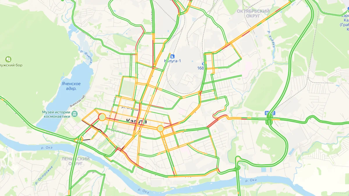 Заторы образовались на Кирова, Московской, Ленина, Кутузова, Королева, Гагарина, Тульской, Жукова, Телевизионной, Гурьянова и других улицах.
