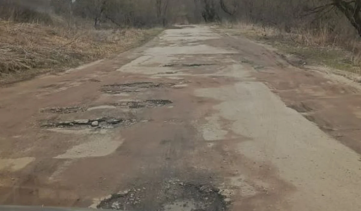 Вся проезжая часть покрыта ямами. Фото сделано перед снегопадом.