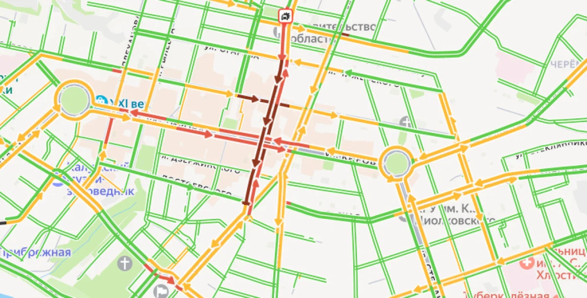 Очевидцы сообщают о ДТП в районе перекрестка с улицей Баррикад.