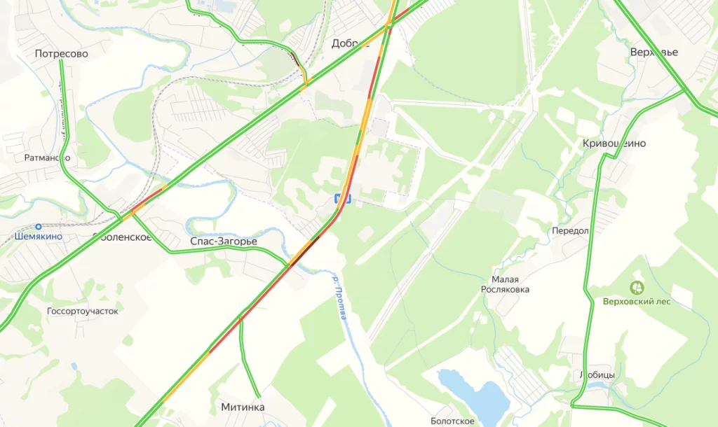 Затруднено движение в районе Спас-Загорья, сообщают очевидцы.