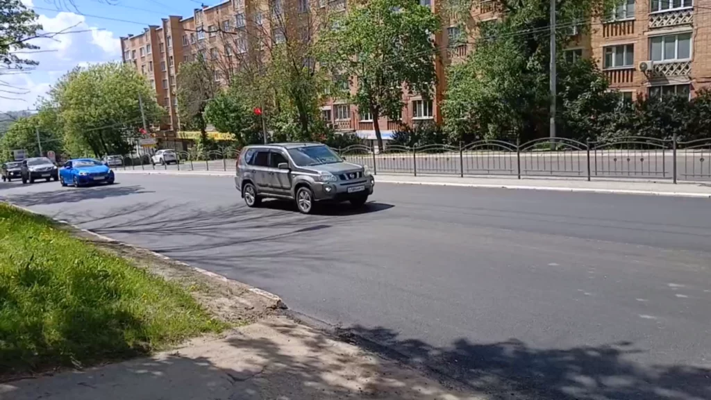 Подрядчик будет укладывать асфальт на оставшемся участке между улицей Королева и Гагаринским мостом.