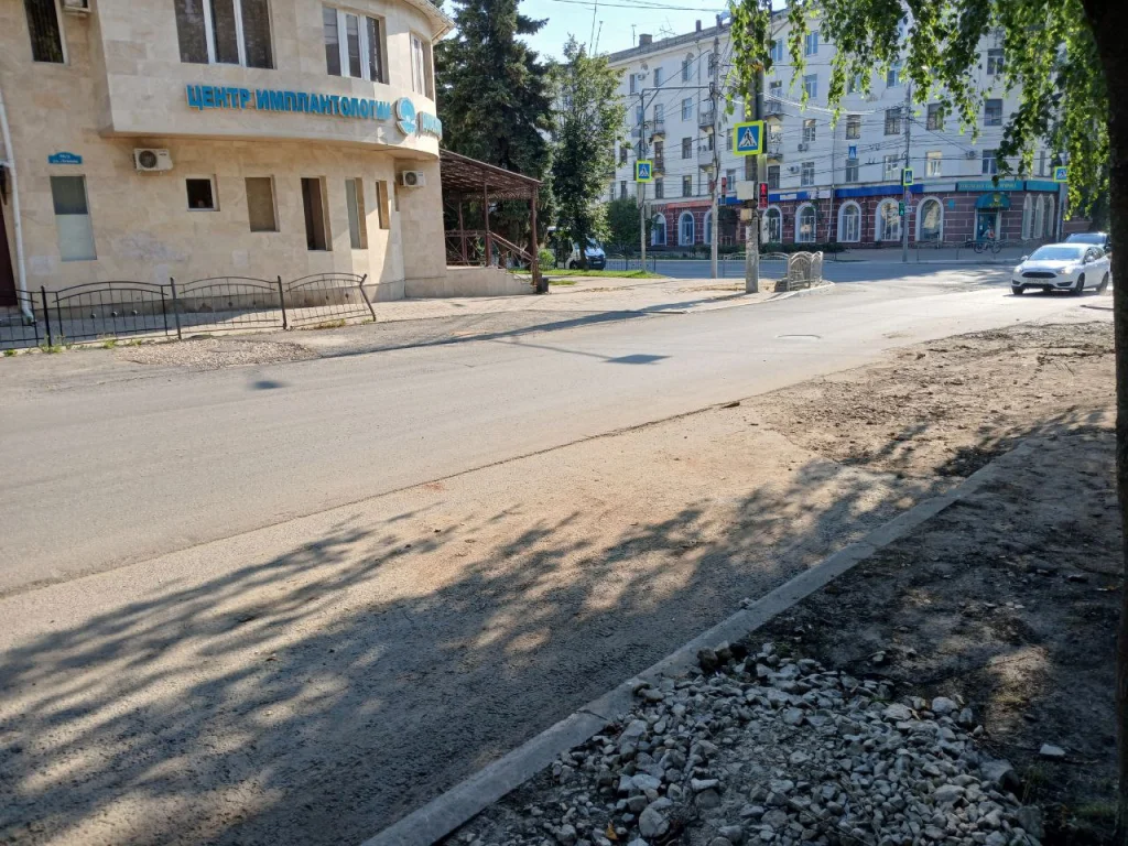 Напомним, на прошлой неделе подрядчик начал работы на тротуаре от Горького до Ленина.
