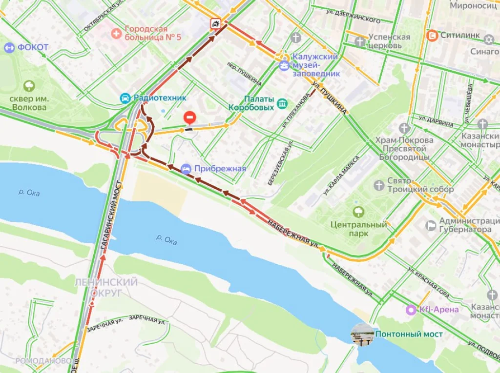 По состоянию на 19:50 в пробках стоят Гагаринский мост, улицы Набережная и Гагарина.