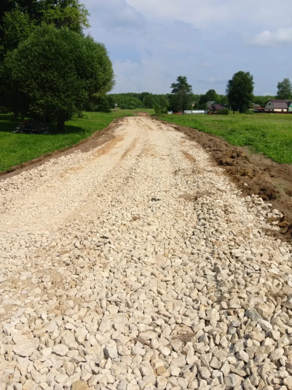 Подрядная организация уже выполнила работы по разравниванию, профилированию, укреплению основания, подсыпке песка и щебня, согласно смете.