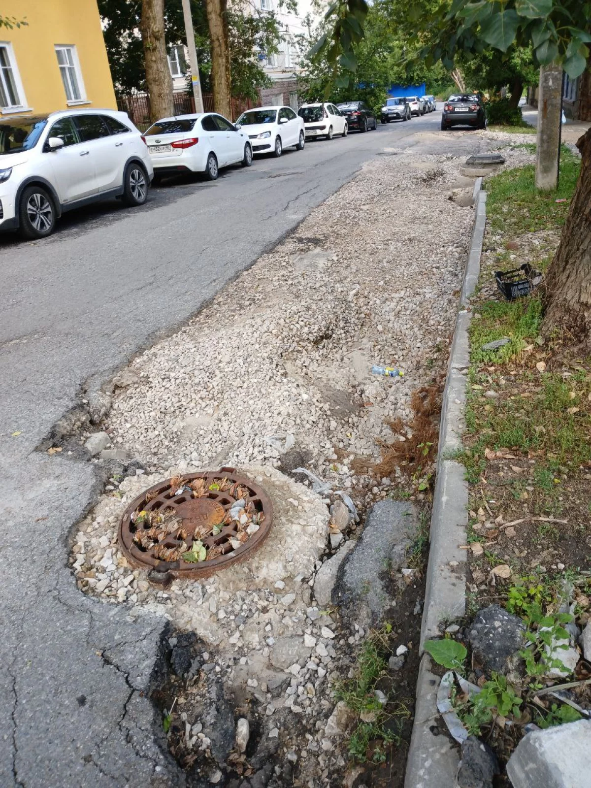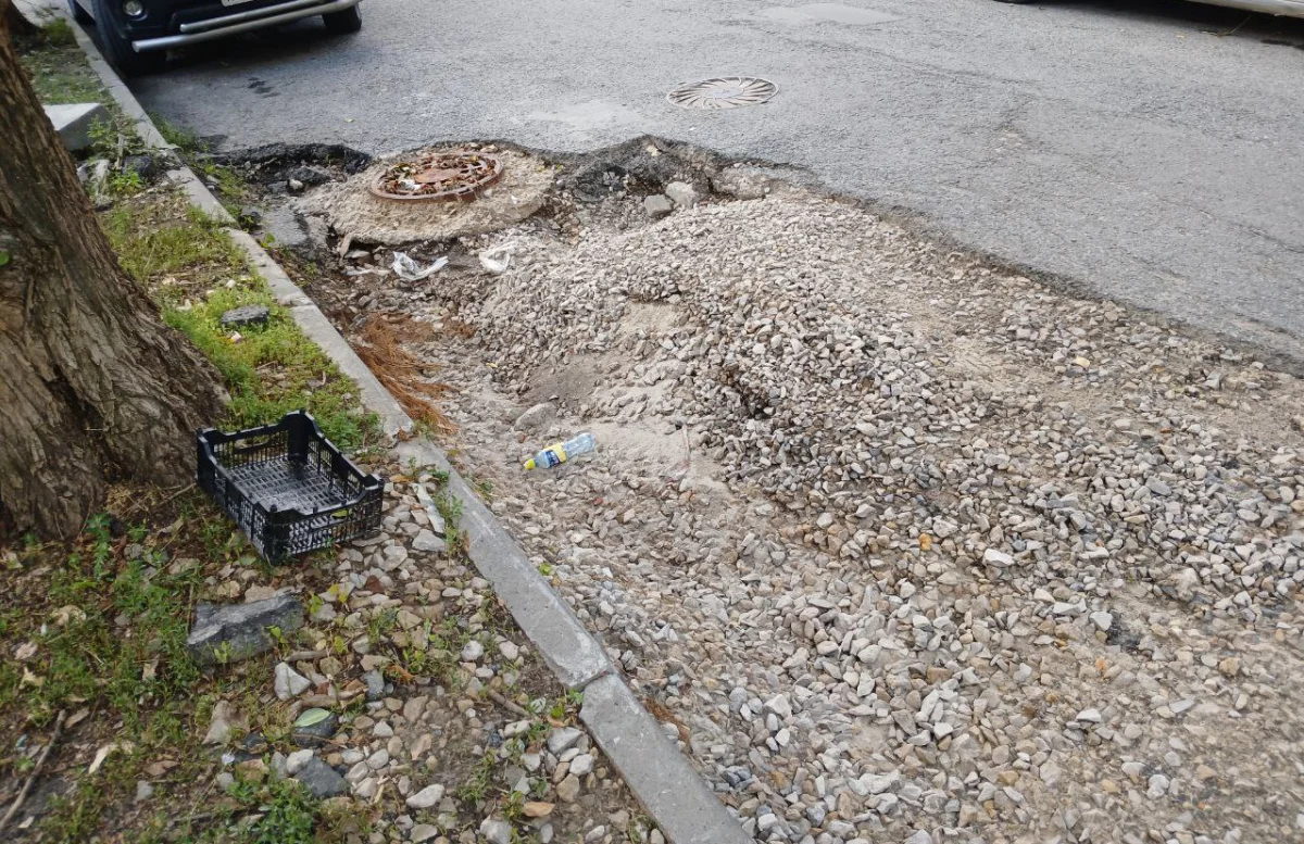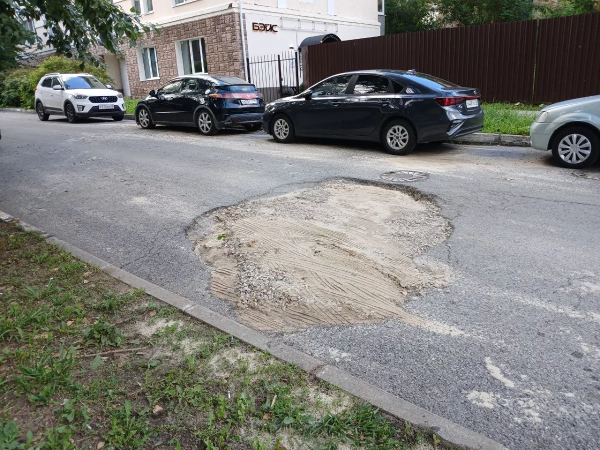 Вечером 15 июля во время сильного дождя заметно увеличились провалы в проезжей части, существовавшие и ранее.