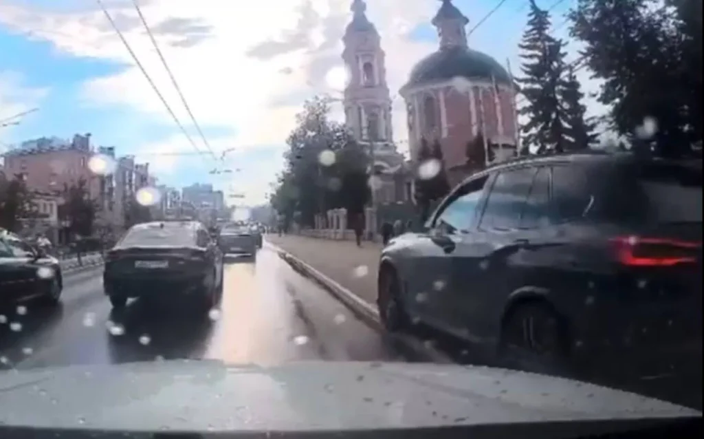Запись с регистратора ранее появилась в соцсетях. на улице Кирова образовалась пробка от Театральной площади в сторону сквера Мира. И один из водителей объехал затор по тротуару.