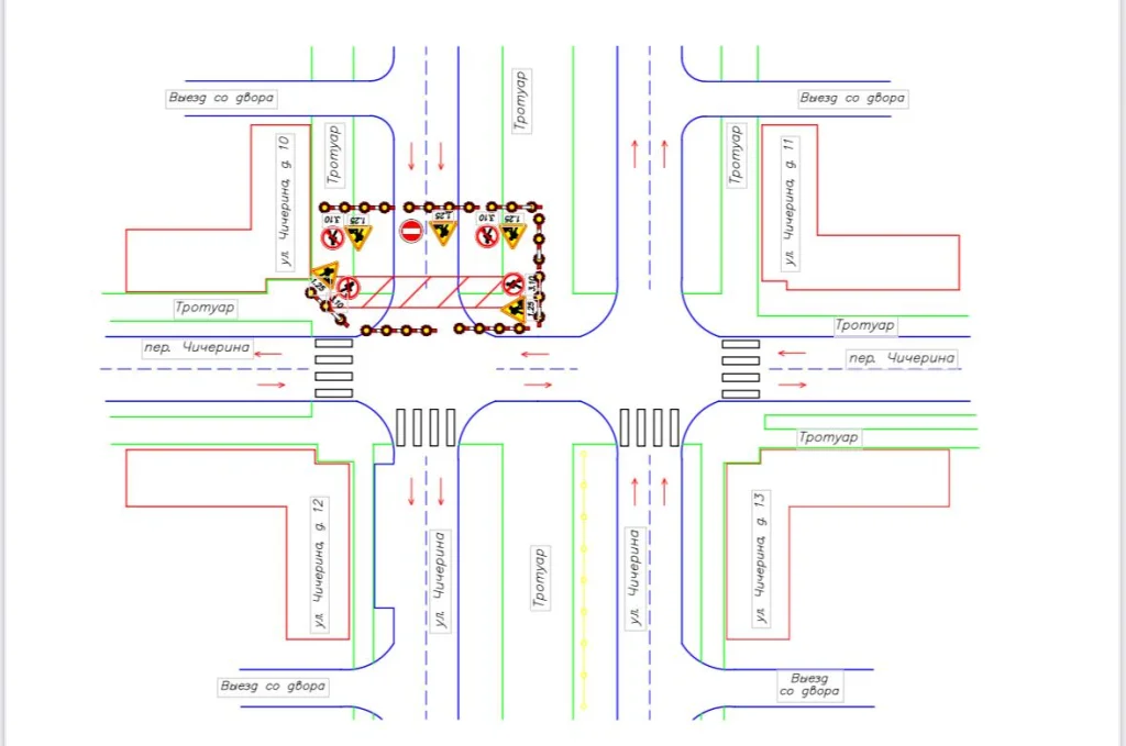 Калужских водителей просят заранее выбирать пути объезда этого перекрытого участка на Чичерина.