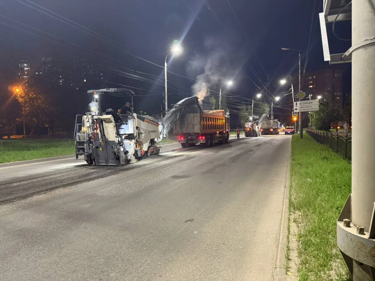 Работы по снятию верхнего слоя старого покрытия велись в районе перекрестка с улицей Хрустальной.