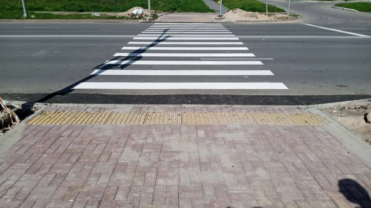 На подходах к переходу смонтирована тактильная плитка.