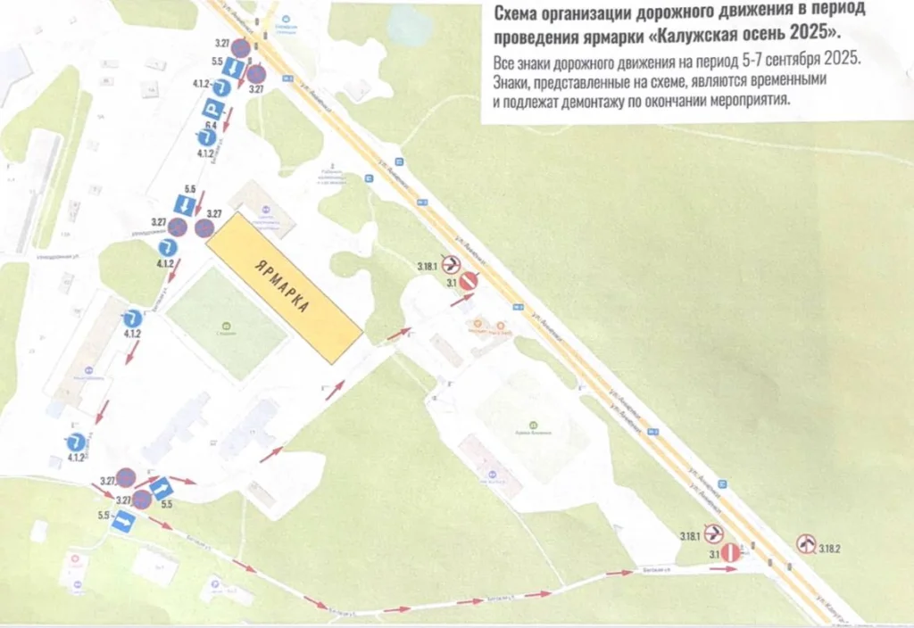 Временные знаки будут установлены с 8:00 5 сентября до 16:00 7 сентября, сообщили в управлении городского хозяйства Калуги.