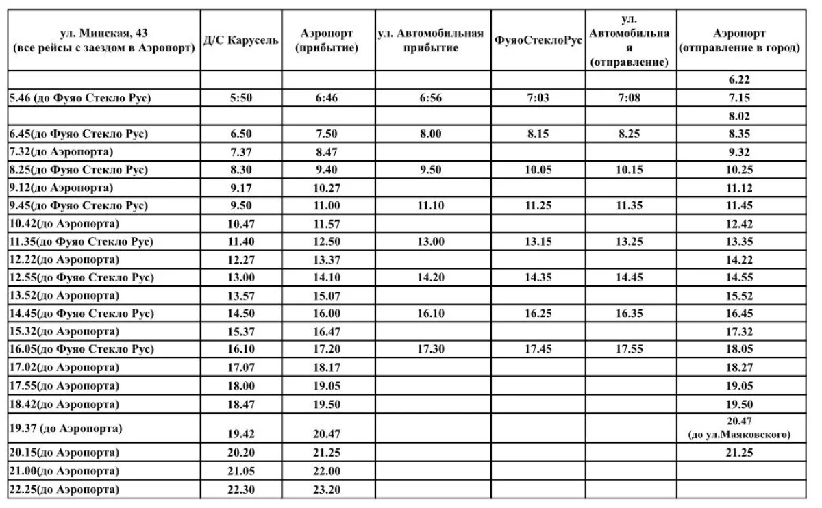 ул. Минская, 43 (все рейсы с заездом в Аэропорт)