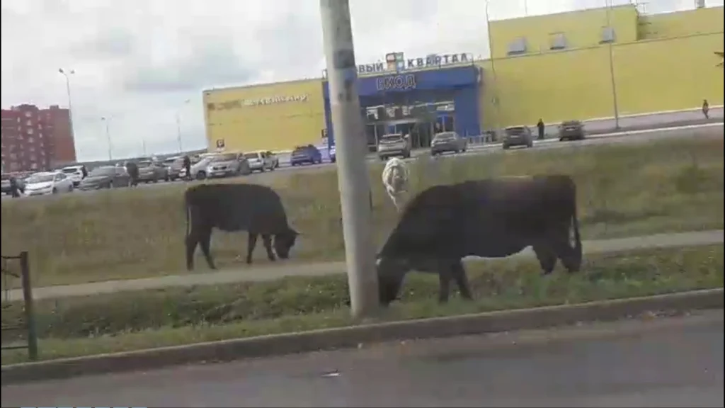 В Калуге лошади и коровы опять массово пасутся на улице Московской