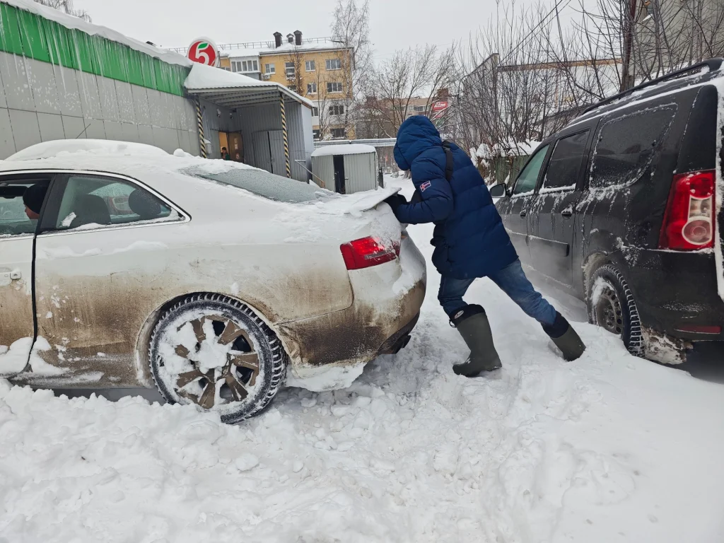 Как следствие, многие автолюбители оказались в снежном плену, причем, еще со вчерашнего дня.