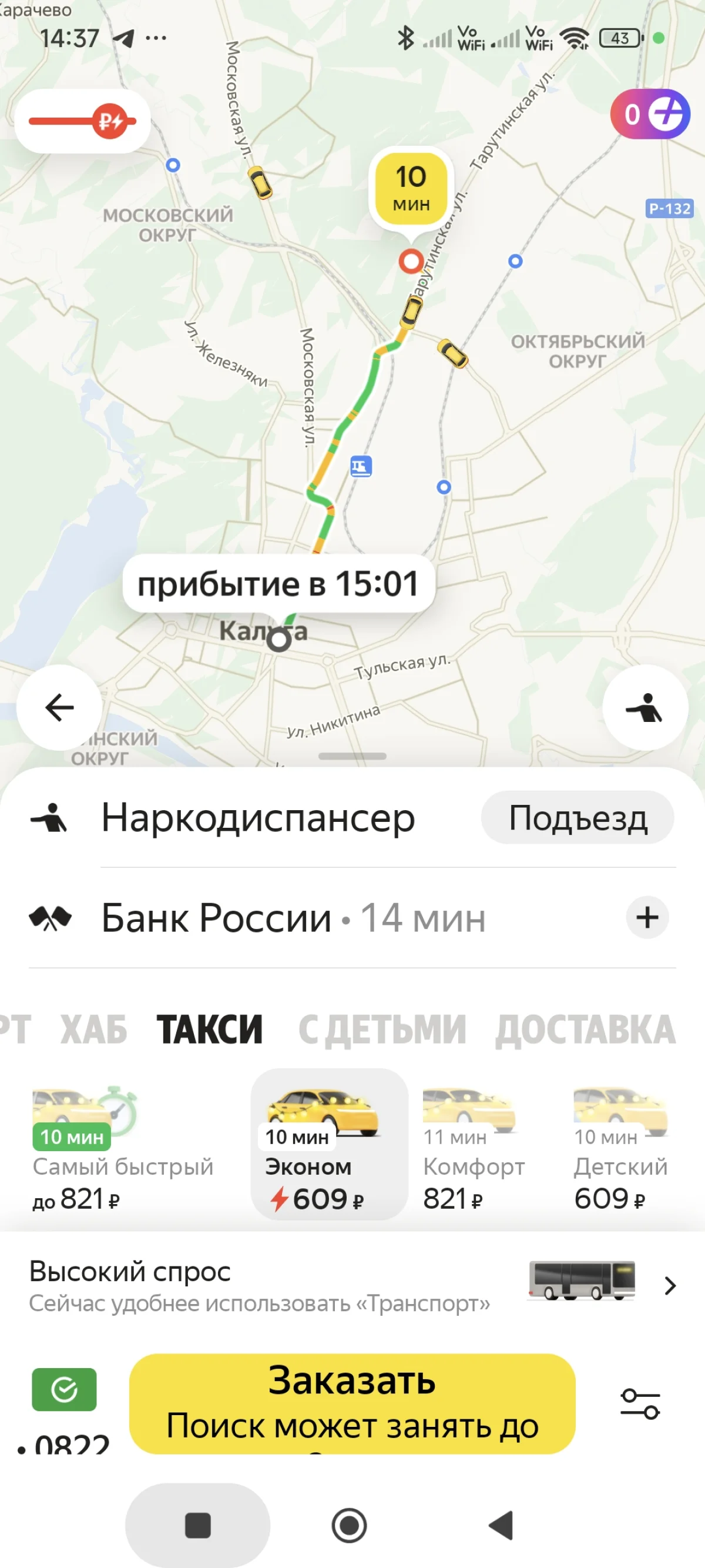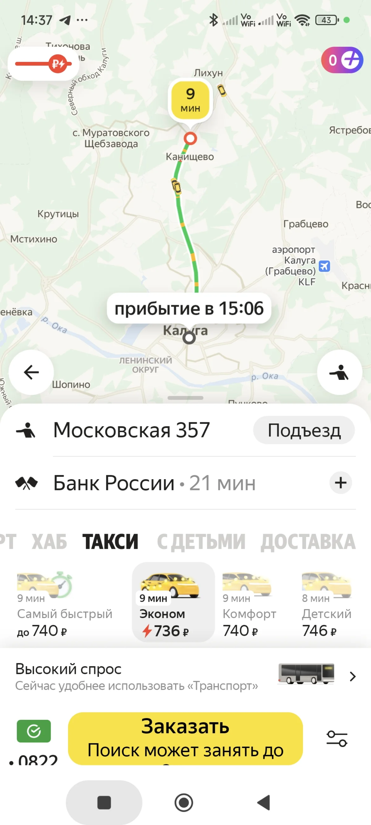 Мы провели эксперимент и посмотрели, сколько будет стоить поездка с разных концов Калуги до Банка России на Ленина, 76 (ну да, любим мы иронию).
