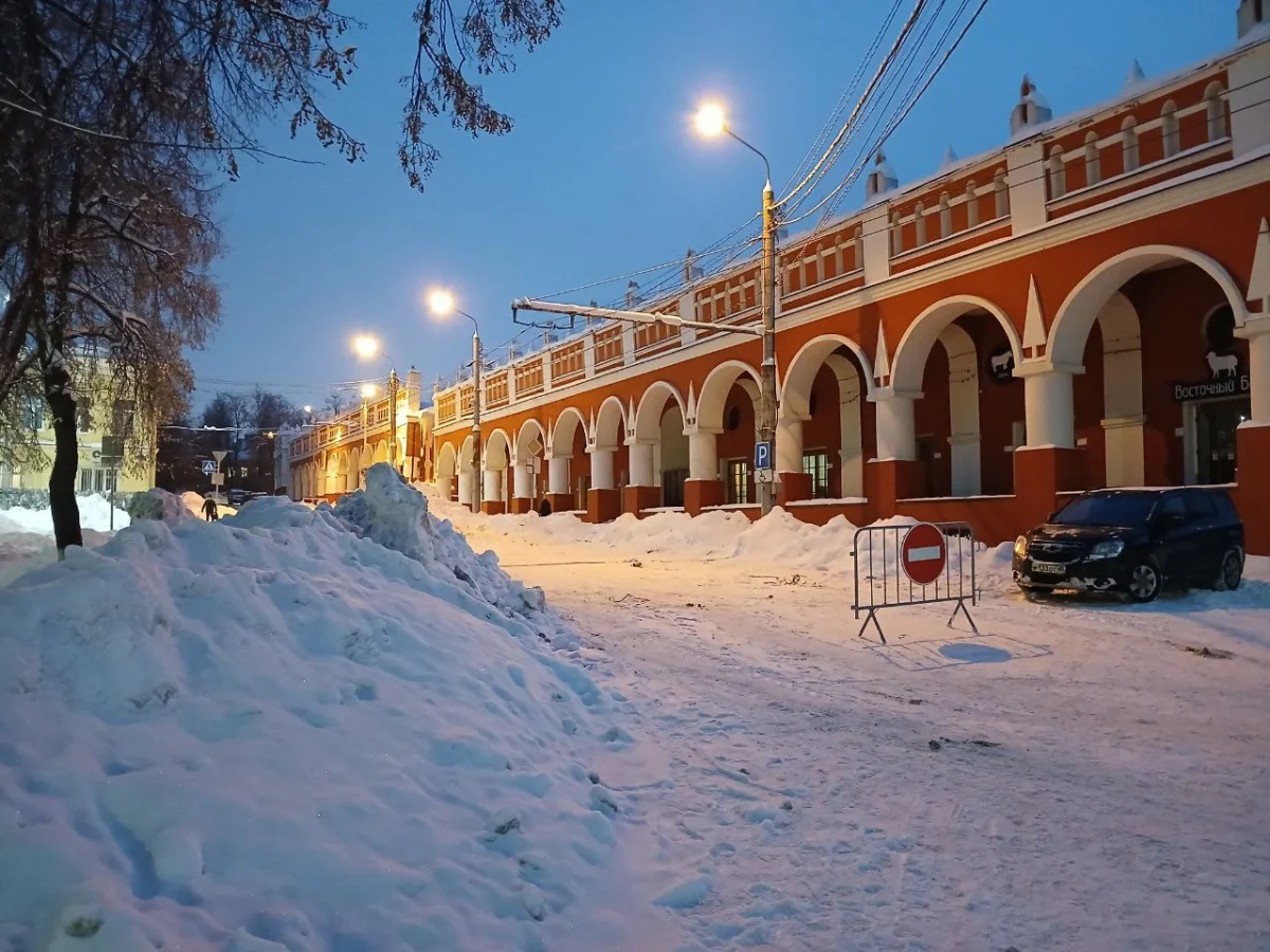 Дороги уже частично освободили от снега и ярмарочных конструкций, но утром у Гостиных рядов еще стоял «кирпич».