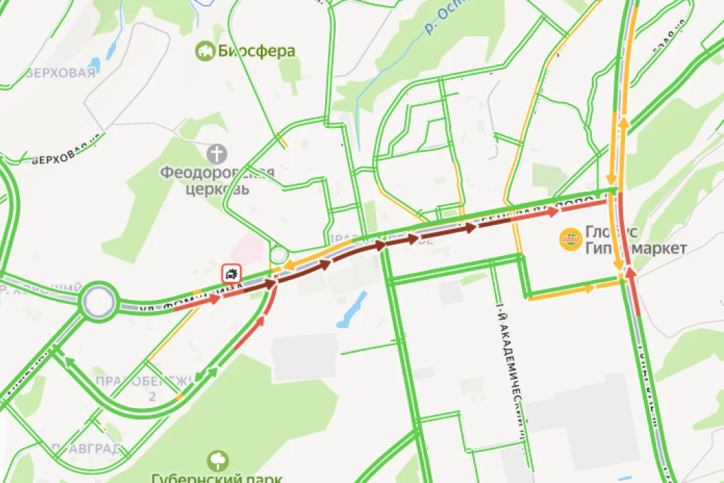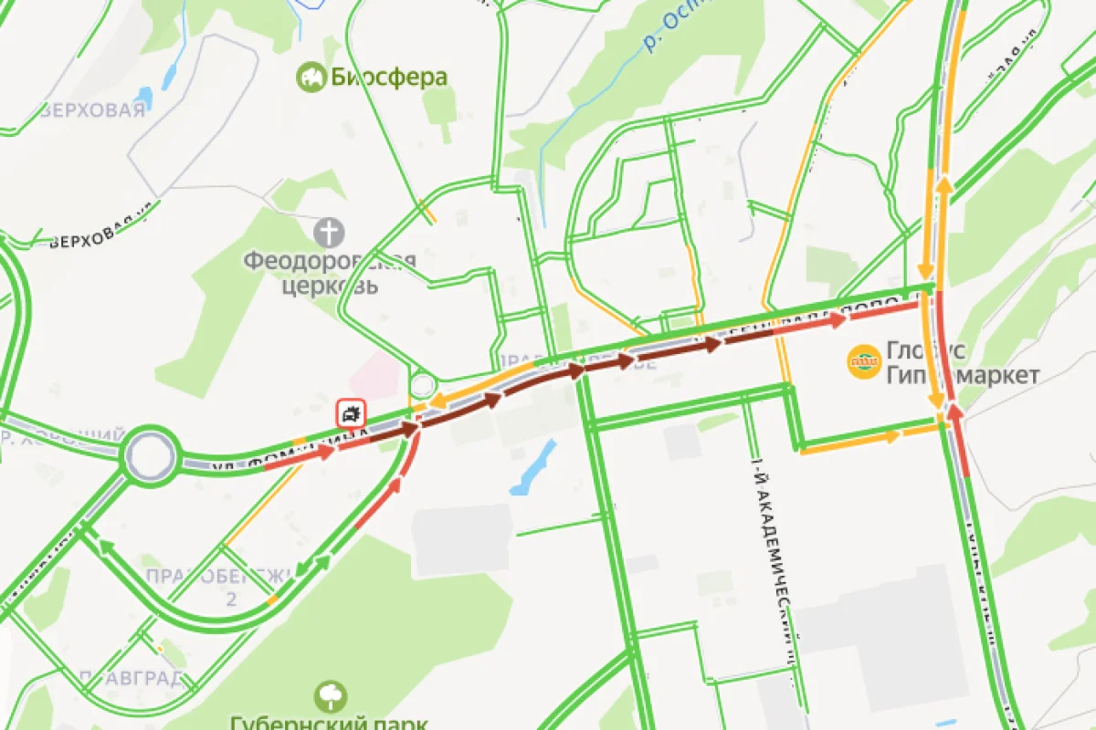 Пробка в сторону центра по улицам Генерала Попова и Фомушина растянулась на два километра.
