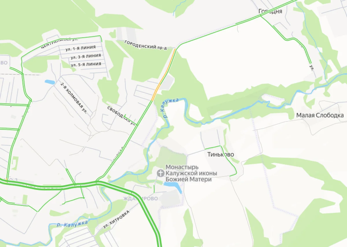 - в районе моста через р. Калужка (участок от поворота на д. Красный Городок до разворотного кольца 41 маршрута).