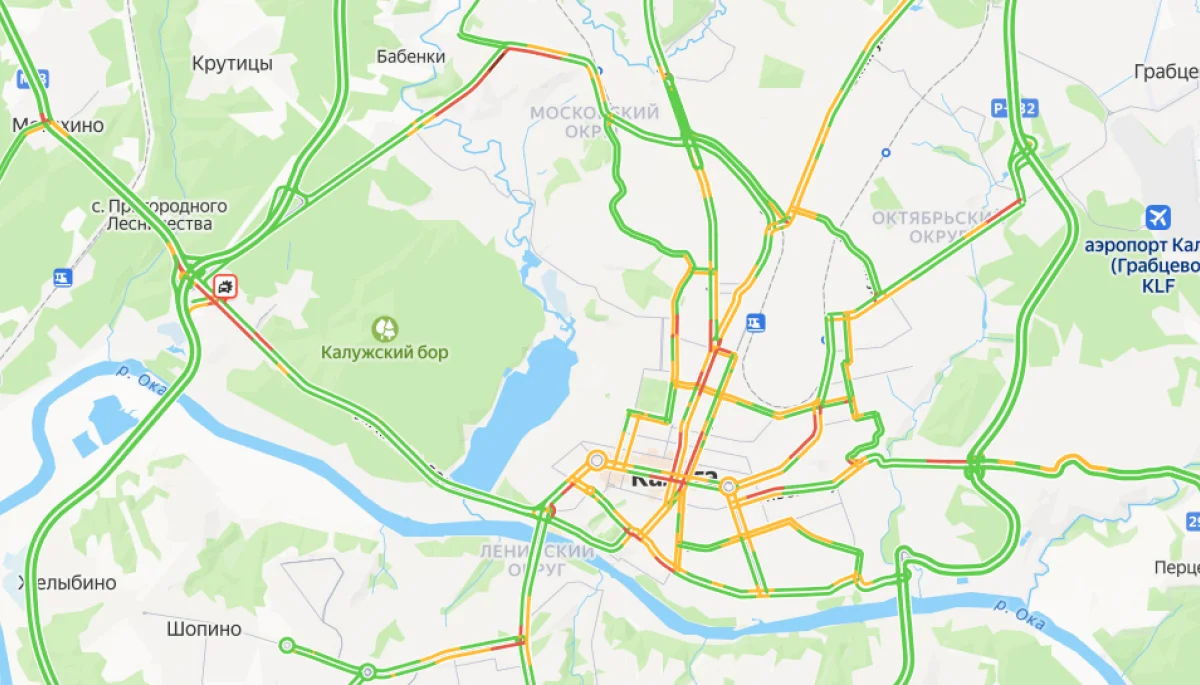 В заторах стоят улицы Генерала Попова, Кирова, Московская, Ленина, Жукова, Советская, Телевизионная.