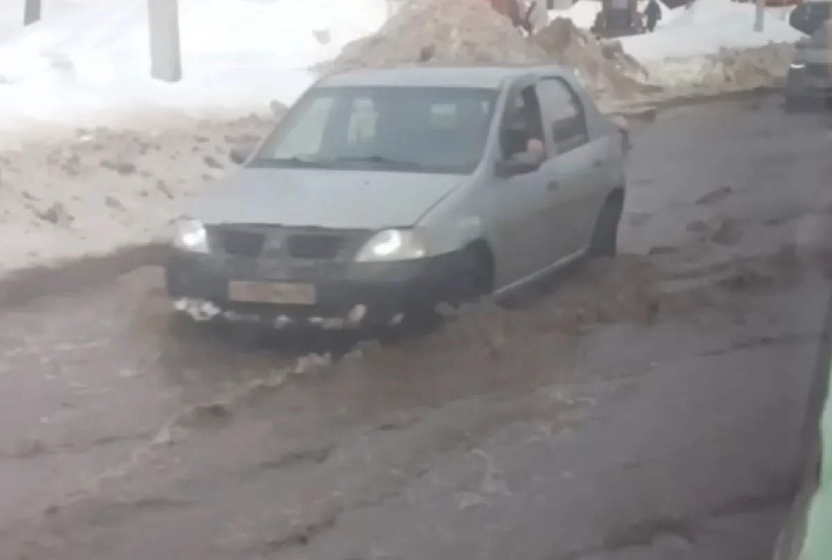 В пятницу, 27 февраля, на Жукова прорвало трубу с холодной водой. Из-за этого в районе поворота на железнодорожную больницу образовалась огромная лужа.