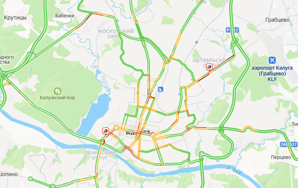 В пробках стоят улицы Генерала Попова, Кутузова, Тарутинская, Московская, Советская, Грабцевское шоссе, дорога между Силикатным и Белой, подъездная дорога от трассы М3 «Украина» в Анненках.