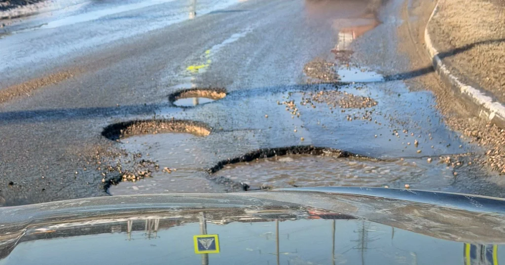 В Калуге съезд с кольца покрылся ямами