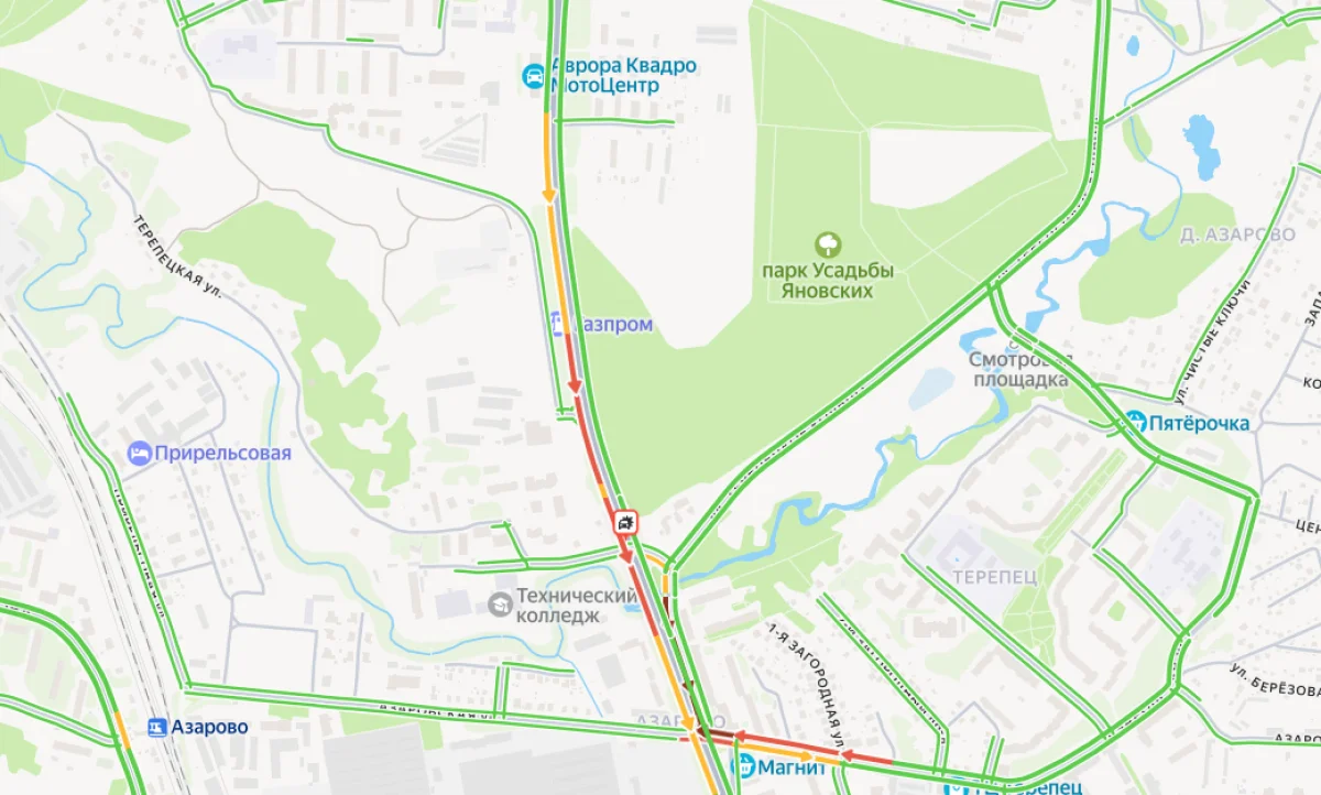 В сторону центра города перед перекрёстком с улицей Азаровской собралась пробка.