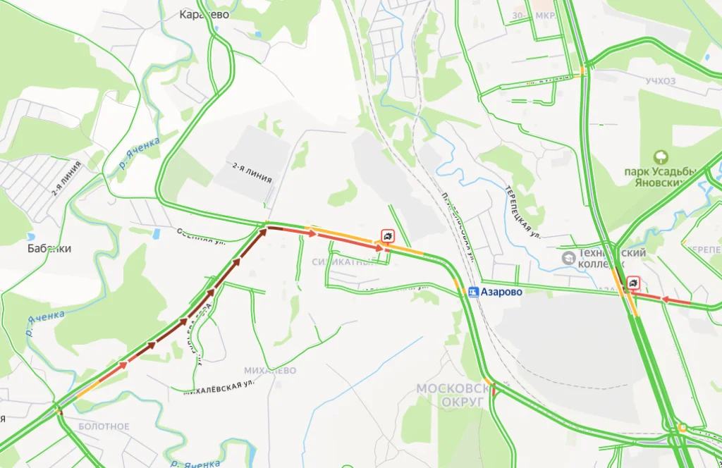 Также утром из-за аварии затруднено движение на перекрестке улиц Азаровской и Московской.
