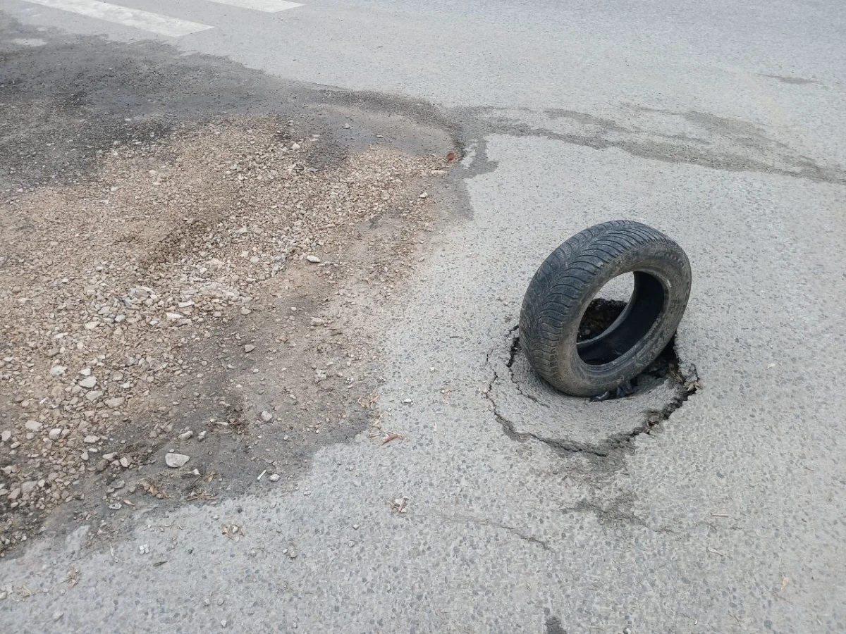 В четверг, 23 апреля, место провала обозначили старой покрышкой.