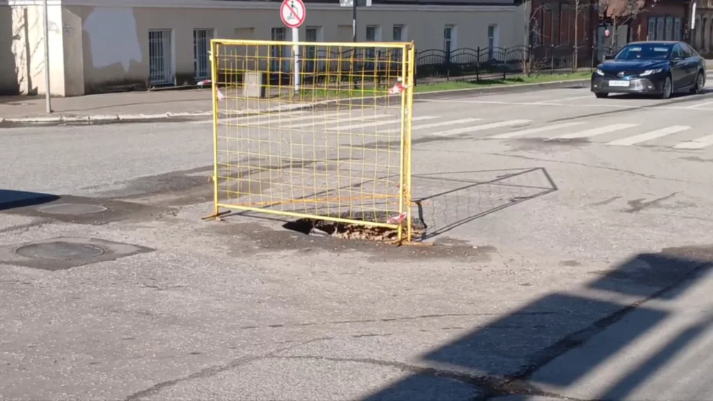Большая яма образовалась на перекрёстке с улицей Герцена.