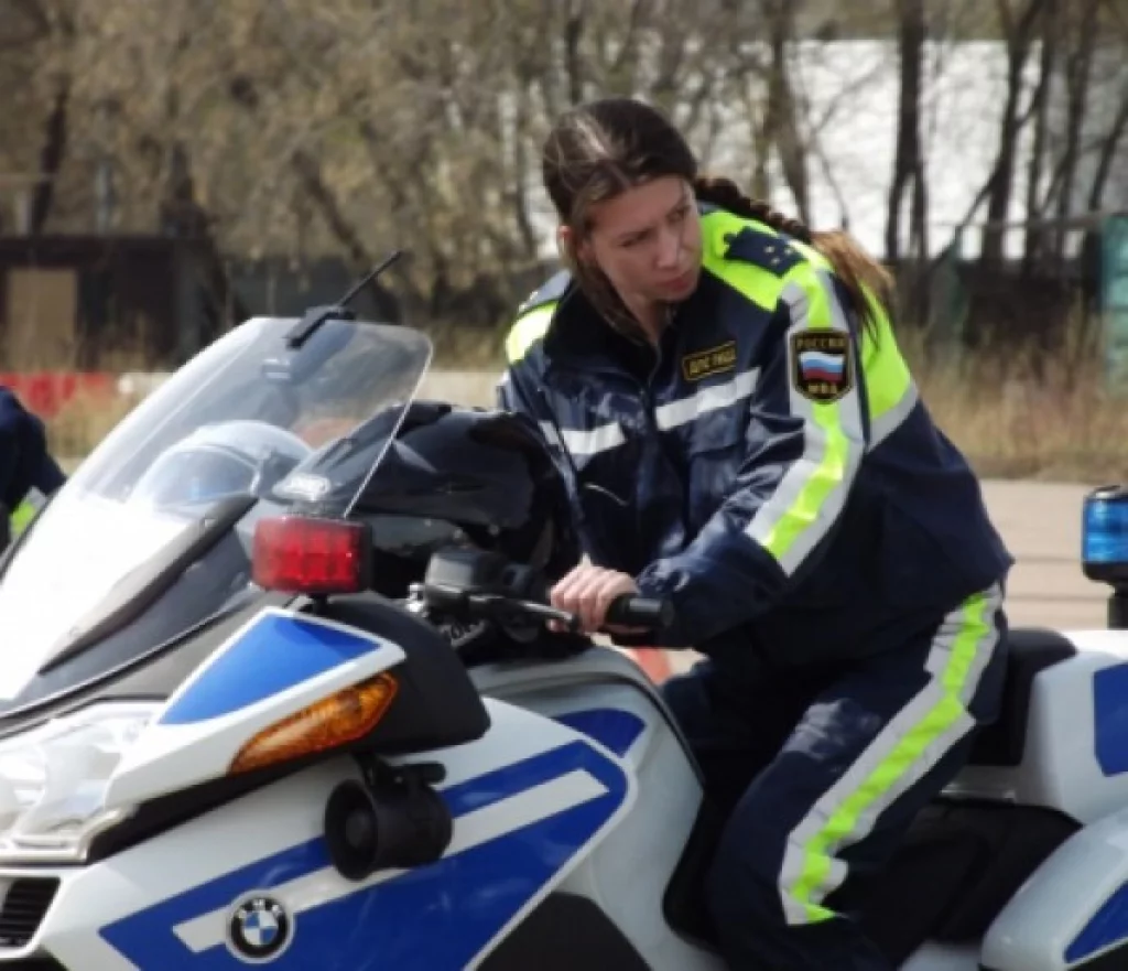 Девушка-полицейский рассекает по Калуге на тяжелом байке