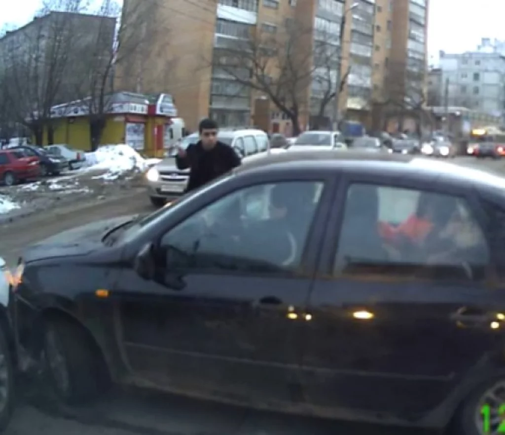 «Лада» пересекала улицу Маршала Жукова рядом с железнодорожным переездом. Водитель, в машине которого был установлен регистратор, пропустил легковушку, но та врезалась в иномарку. После столкновения водитель ВАЗа сдал назад, чуть не сбил водителя, еще раз задел пострадавшую машину и уехал.