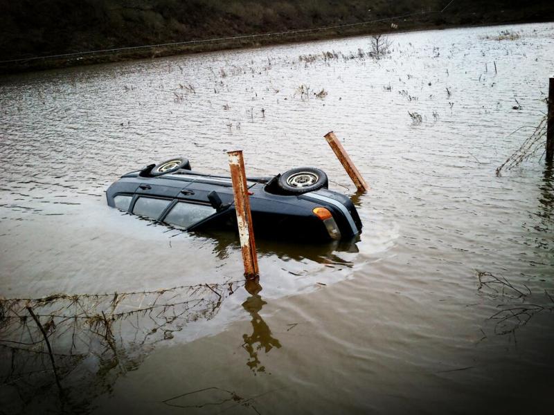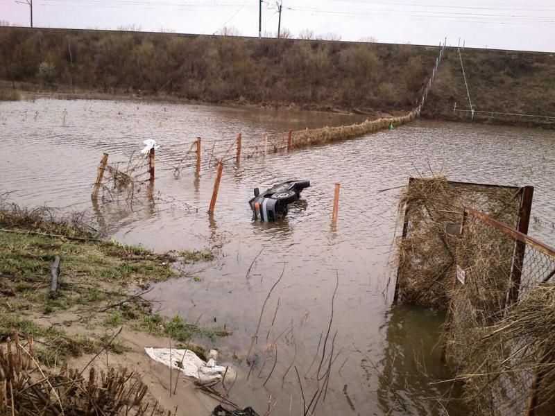 Сам автомобиль до сих пор остается в воде. Его фотографии разместил в Twitter наш читатель @aklochkoff.