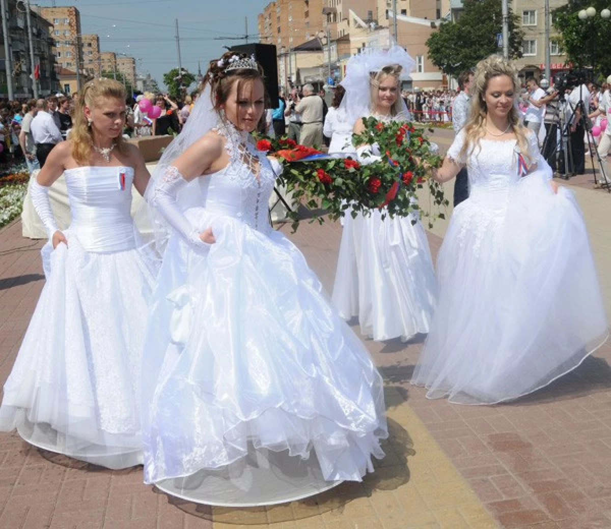 По улицам города пройдут 50 девушек в свадебных платьях.