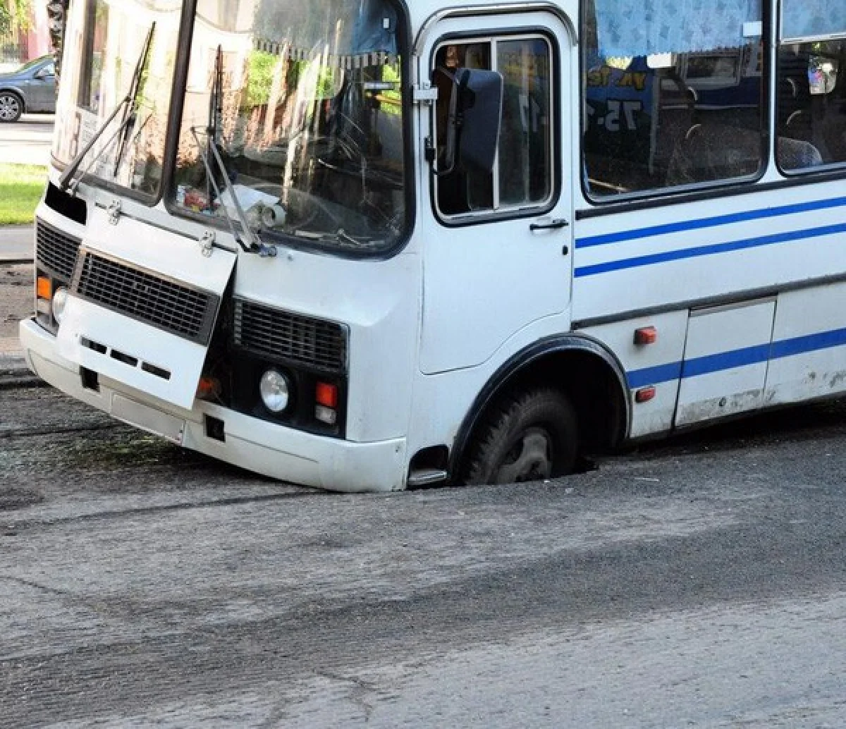 В воскресенье, 9 июня, в сквере Медсестер в Калуге рейсовый ПАЗик 98-го маршрута провалился под асфальт.