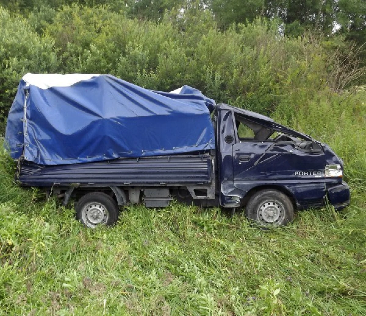 Водитель мини-грузовика Hyundai Н100 не справился с управлением на киевской трассе в Бабынинском районе в среду, 17 июля. Машина врезалась в ограждение, снесла примерно 30 метров парапета, вылетела в кювет и опрокинулась. Водитель при этом получил неопасные для жизни травмы – ушибы ребер.