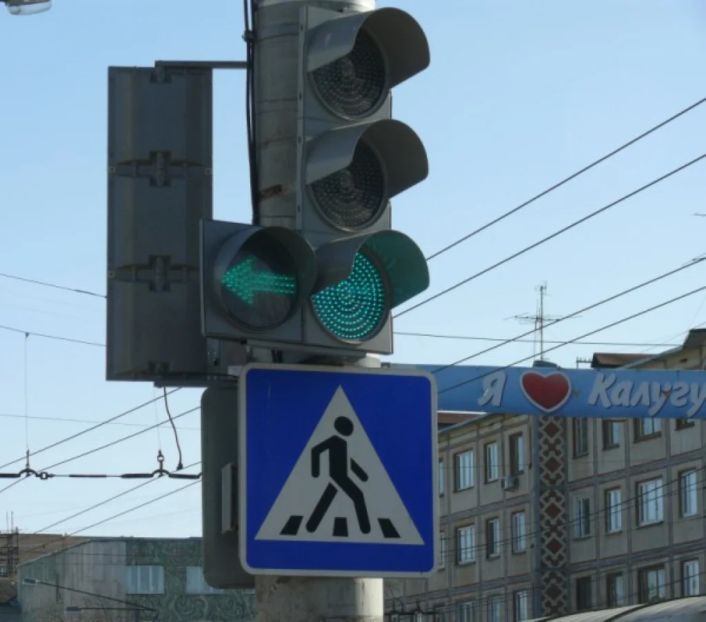 Дополнительные стрелки левого поворота на светофорах появились на днях в Калуге на перекрестке улиц Кирова и Московской. Ранее, напомним, подобные секции установили и на перекрестке Кирова-Ленина.