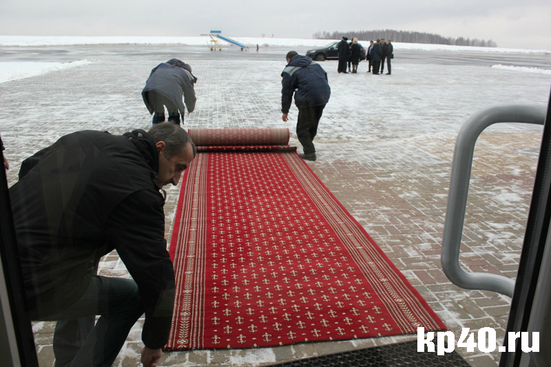 На часах было примерно без четверти 11, когда служащие аэропорта расстелили у входа заранее принесенную ковровую дорожку красного цвета.