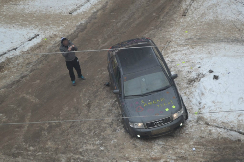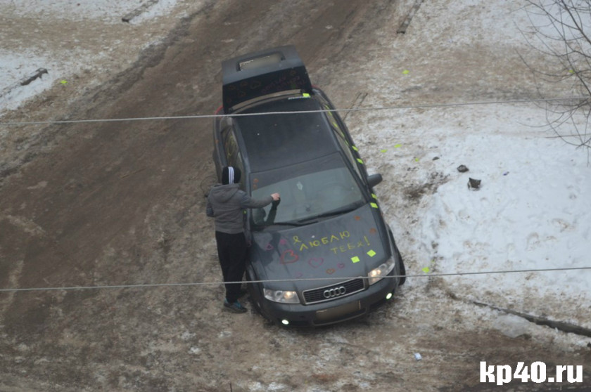 В субботу, 14 февраля, в День всех влюбленных в Калуге во дворе дома на улице Суворова обклеили и разрисовали припаркованную «Ауди» с подмосковными номерами. Судя по надписям, сделала это влюбленная в хозяина авто девушка. На машине она нарисовала сердечки. На капоте красовалась надпись: «Я люблю тебя!», на багажнике: «Ты самый лучший!». Кроме того, она обклеила машину стикерами, на которых были всевозможные комплименты молодому человеку.