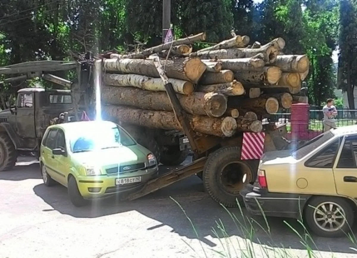 Днём в четверг, 4 июня, на перекрестке улиц Московской и Дзержинского в Калуге оторвавшийся прицеп лесовоза повредил две иномарки – «Дэу» и «Форд». Инцидент попал на запись видеорегистратора одной из легковушек.