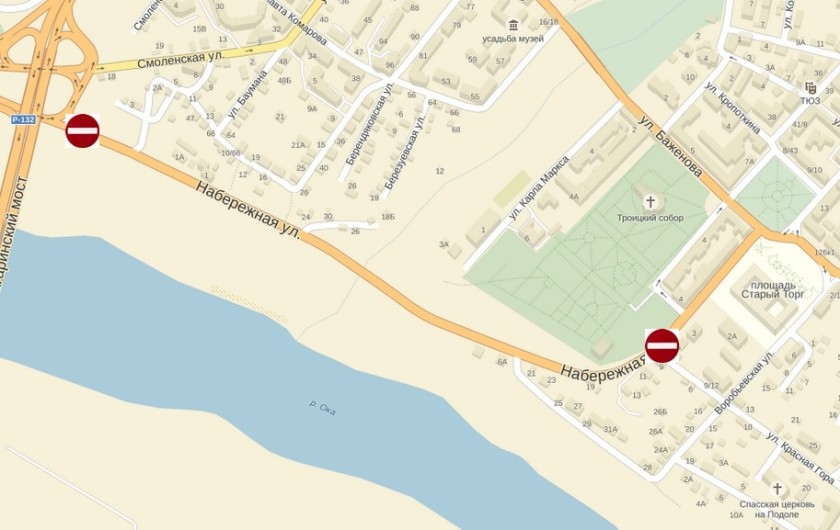 Проехать там нельзя будет на участке от Гагаринского моста до перекрёстка с улицей Красная Гора. Водителей просят заранее выбирать пути объезда.