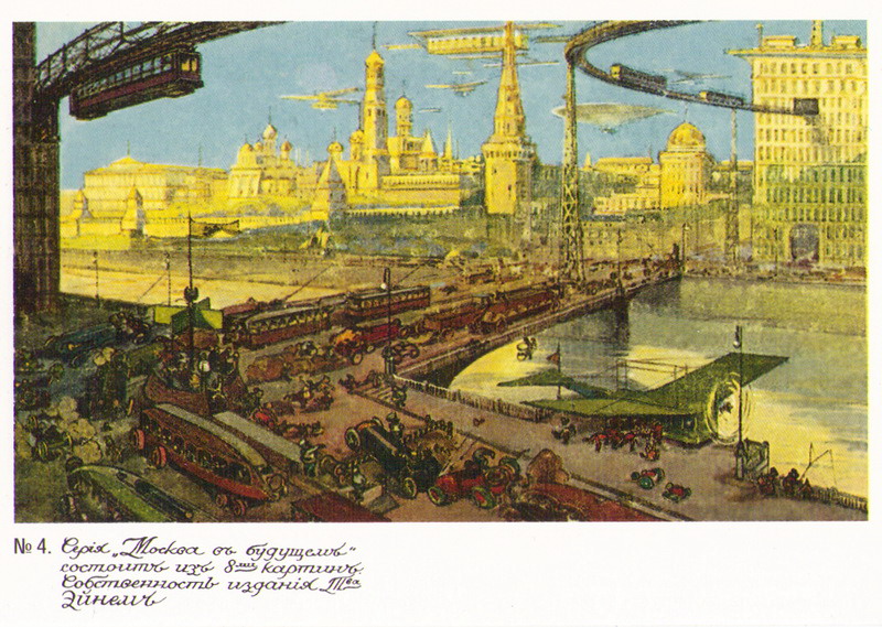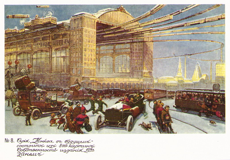Эти открытки были выпущены в начале ХХ века. На них изображена Москва будущего. Оказывается, проекты метро и надземных скоростных трамваем существовали уже тогда. «Городская дума уже готова была приступить к реализации идеи, но её погубило Московское археологическое общество – организация, которая выполняла функцию современного общества охраны памятников. Оно встало грудью: «Не дадим уродовать облик Москвы!» - рассказывает Сергей Ткаченко. – В итоге решено было отложить реализацию проекта на 30 лет. Потом произошла революция, стало не до него. Проектировать метро в Москве начали в 1931 году – и именно по чертежам, созданным до революции.
