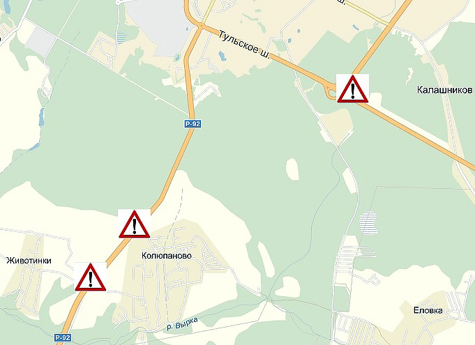 На участке дороги Р-132 Калуга – Тула – Михайлов – Рязань в районе развязки и выезда на окружную дорогу проезд будет осуществляться по светофору.