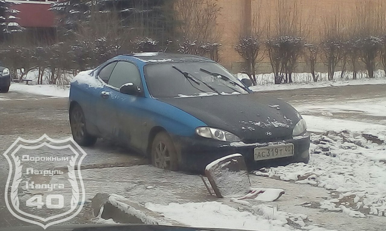 19 марта, ул. Генерала Попова, 3. Машина вмёрзла в лужу. Жители яму пометили стулом.
