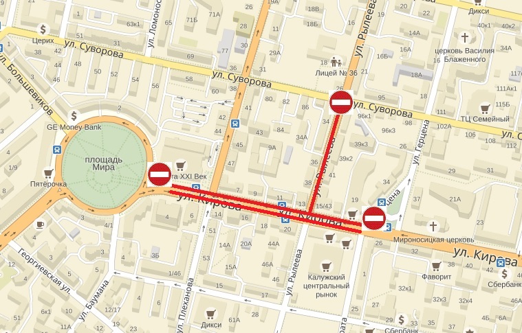 Управление городского хозяйства Калуги сообщило, что движение пассажирских автобусов и маршруток будет осуществляется по прилегающим улицам: Суворова, Огарева и другим.
