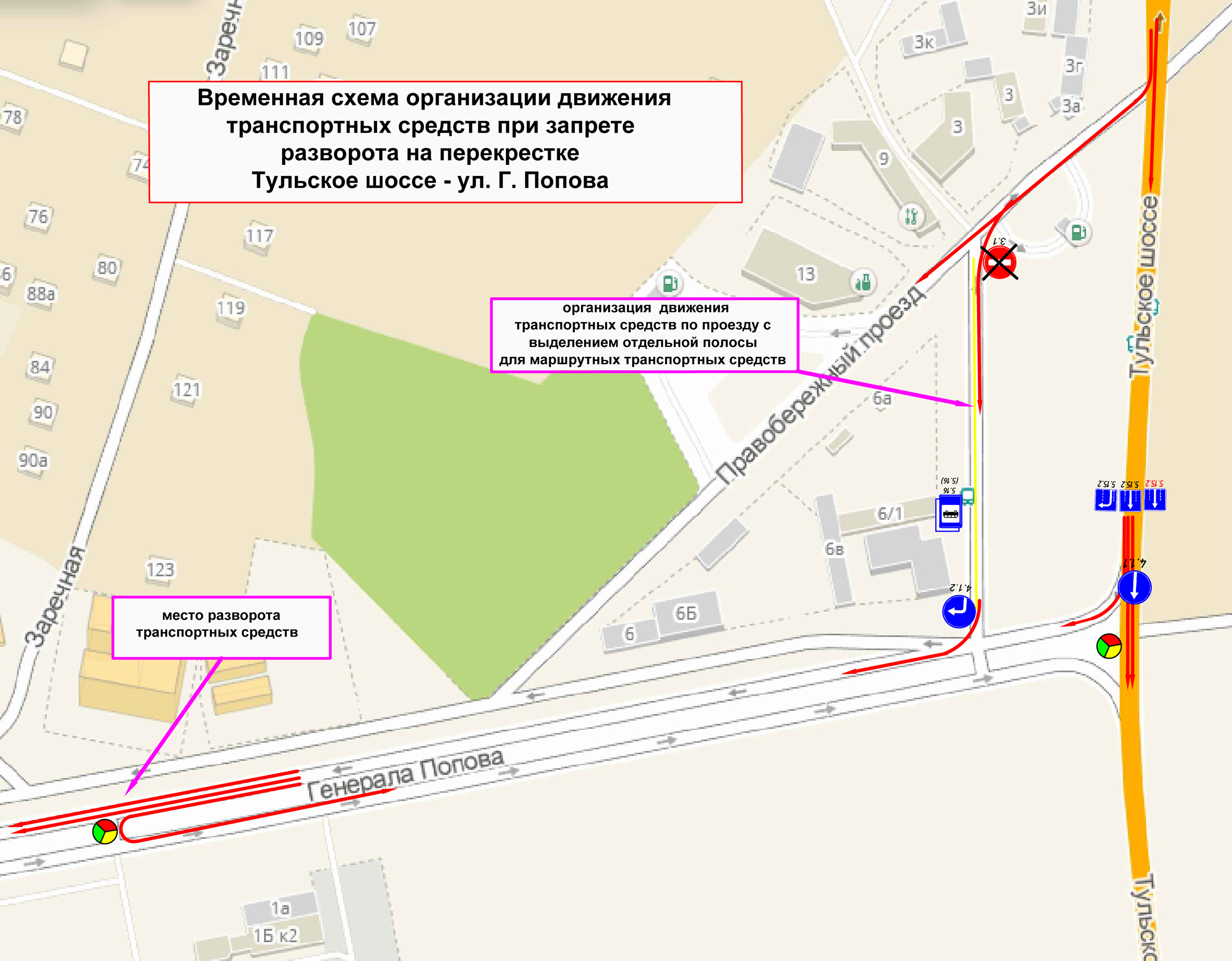 На перекрёстке Тульского шоссе и Генерала Попова запретят разворот