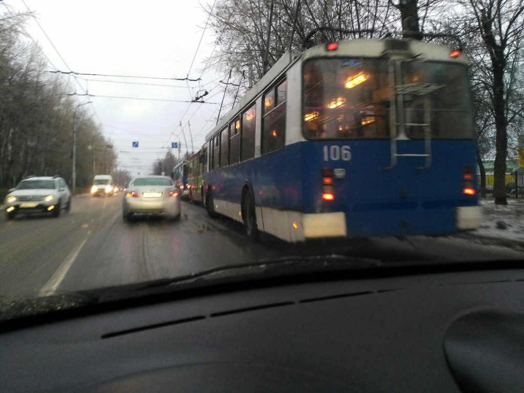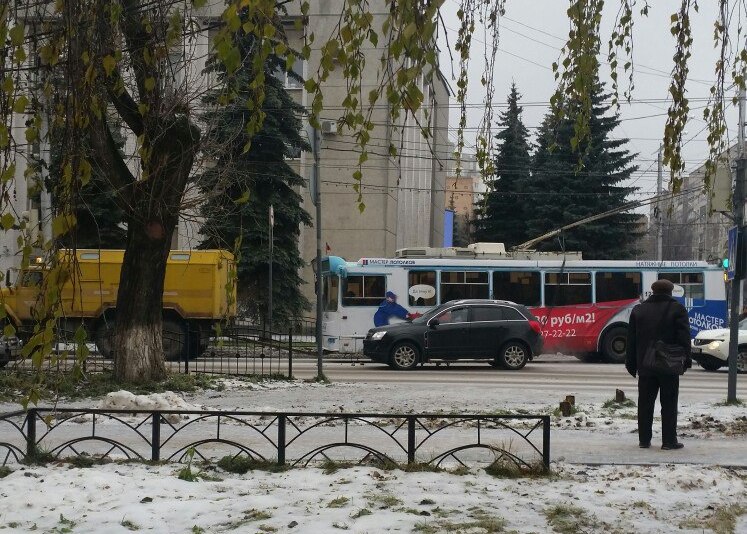 Как мы уже писали, из-за ледяного дождя в Калуге обледенели контактные провода троллейбусной сети. В результате большая часть троллейбусов не вышла из депо. А те, что вышли, остановились прямо на улицах.