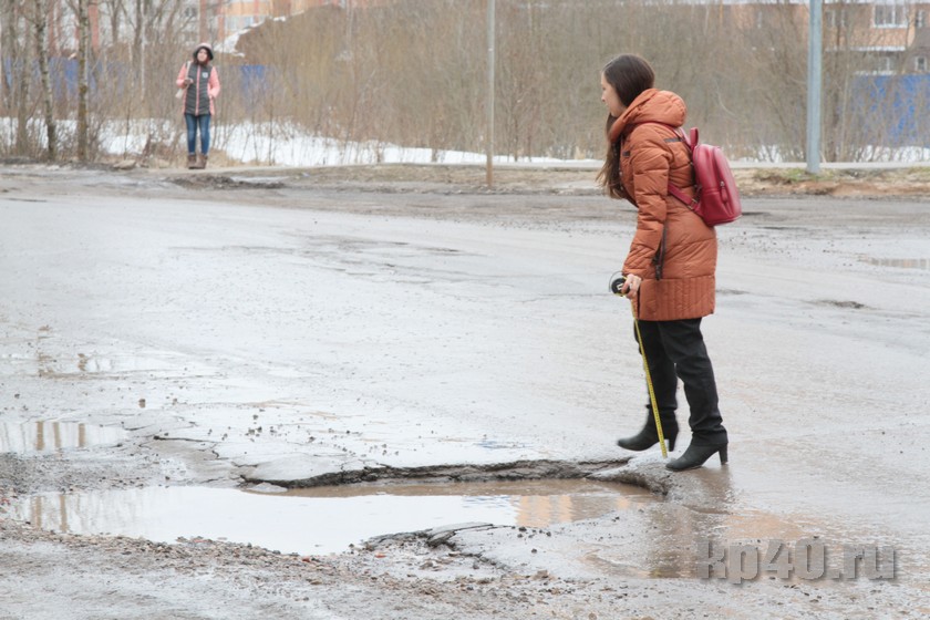 Чтобы измерить длину этой колдобины, пришлось обратиться за помощью к прохожим.