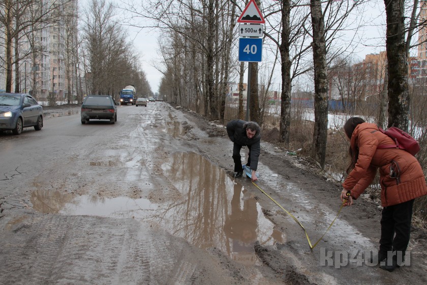 В пятницу, 3 марта, мы решили измерить длину и глубину шопинских ям. По дороге на Правый берег разговорились с водителем автобуса. Он пожаловался, что из-за них, порой, не может подъехать к остановке.